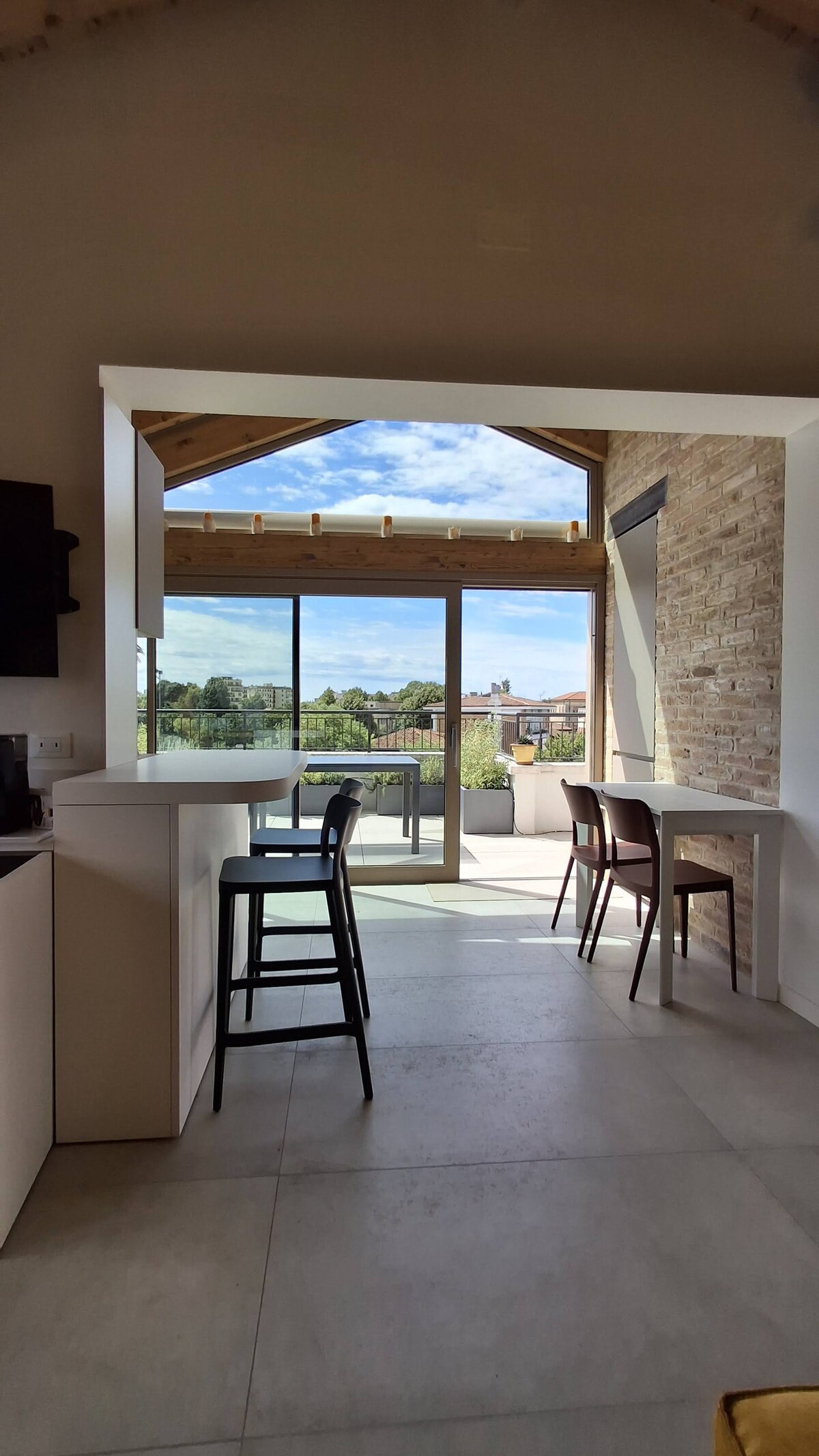 Fedezd fel a tökéletes menedéket Pordenone szívében! Ez az elegáns, háromszobás lakás világos nappalival, kanapéval és nagy TV-vel a kikapcsolódáshoz, teljesen felszerelt, modern konyhával, tágas hálószobával és king-size ággyal, valamint egy további loft stílusú vendégszobával és fürdőszobával rendelkezik. Az igazi különlegesség a panorámaterasz, amely tökéletes aperitifekhez vagy vacsorákhoz, kilátással a történelmi központ háztetőire és a harangtoronyra. Élvezd a felejthetetlen tartózkodást a városunkban.