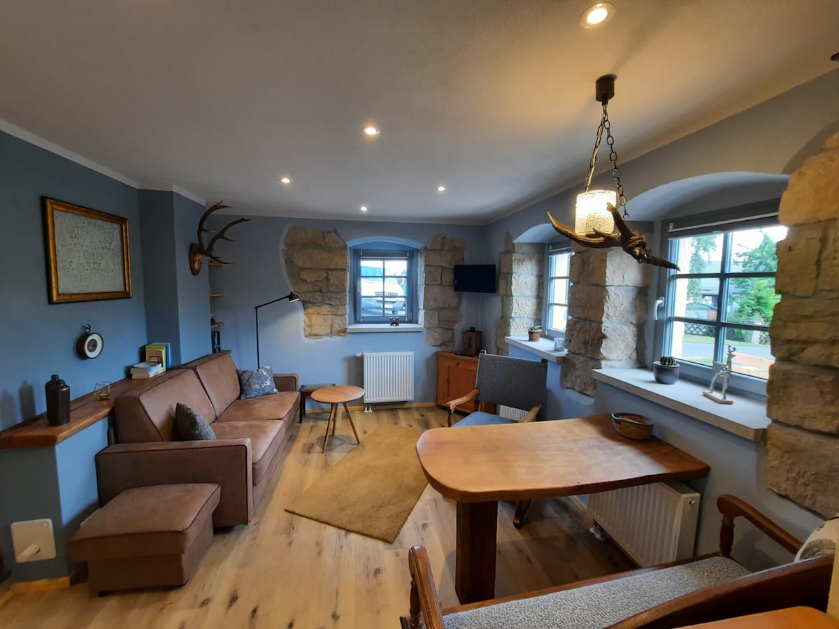 Vadul romantikus és otthonos a nyüzsgő pataknál. Különleges típusú, 2 fő befogadására alkalmas szálláshely. Az apartman a Rathewald-malom légkörében található, közvetlenül a bástya mellett, és közvetlenül a Saxon Svájc Nemzeti Park központi övezete mellett. A jól ismert festőösvény közvetlenül mellette vezet. Ideális az Elba homokkő hegyekbe tett kirándulásokhoz, de Pirna és Drezda környékéhez is.