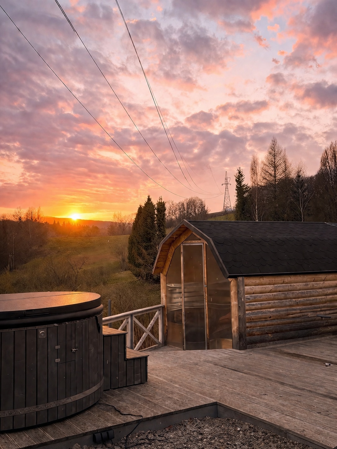 Nowoczesny, całoroczny domek loftowy z prywatną strefą SPA w sercu Bieszczad. Sauna, dwuosobowa wanna z hydromasażem i balia z jacuzzi na tarasie. Dwie sypialnie, klimatyzacja, w pełni wyposażona kuchnia, salon z sofą i TV, łazienka z pralką. Na zewnątrz miejsce na ognisko, taras i leżaki. Pościel, ręczniki, szlafroki i kapsułki do kawy w cenie. Parking i niezapomniany klimat w pakiecie! sobie odpoczynek i wyciszenie. W przypadku korzystania z balii obowiązuje dodatkowa opłata +150zł/pobyt.