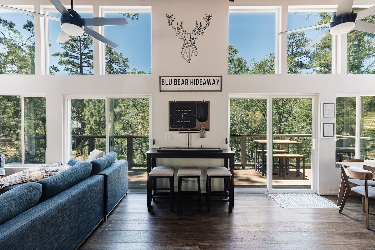 A Balsam Bungalow egy századközepi bungaló, amely egy fenyőkkel borított domboldalon, állami erdőre és tóra néző kilátással, az exkluzív és bájos Moonridge környéken található. Sétálj/vezess a Big Bear lejtőihez, amelyek 0,3 mérföldre találhatók. Snow Summit 9 perc autóval. Állami erdő túraútvonalak 2 háztömbnyire. Bújj be a falazott kandalló mellé, és gyönyörködj a festői kilátásban a mennyezettől a padlóig érő ablakokon keresztül. Élvezd az erdős udvart, amely körbeveszi a teraszt, tűzrakóhelyet, grillt, étkezőt és festői pezsgőfürdőt – amelyet minden vendég után szervizelünk.