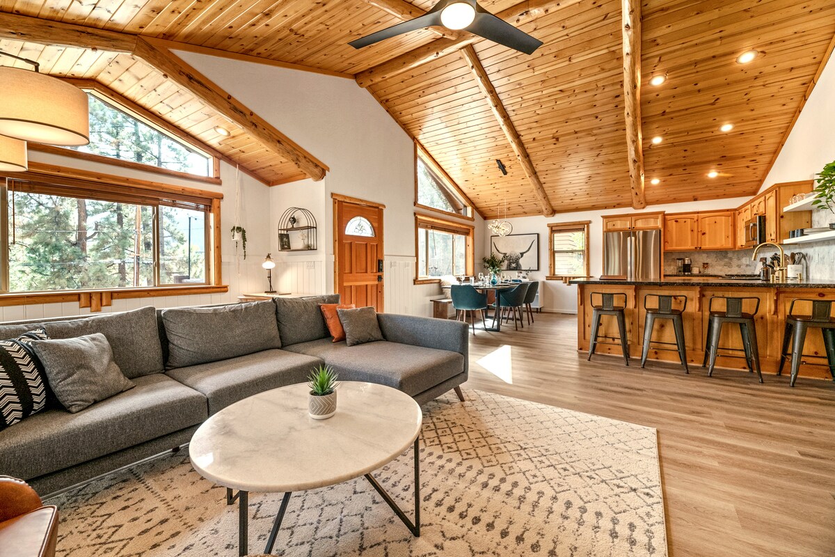 Élvezd ezt az újonnan épült, bohém stílusú erdőházat. Tökéletes helyen, a kívánt Moonridge környéken, kevesebb mint egy mérföldre a Bear Mountain és a Snow Summit üdülőhelyektől. Sétatávolságra az alpesi állatkerttől, golfpályától, kerékpáros/túraútvonalaktól és éttermektől. A falu és a tó csak pár mérföldre van. Élvezd a privát parkolást, a teljesen felszerelt ínyenc konyhát, a tágas hálószobákat és a 2 teljes fürdőszobát, az okostévéket, a nagy sebességű Wi-Fi-t és a kerítéssel elkerített hátsó udvart, amelyben pezsgőfürdő is található!