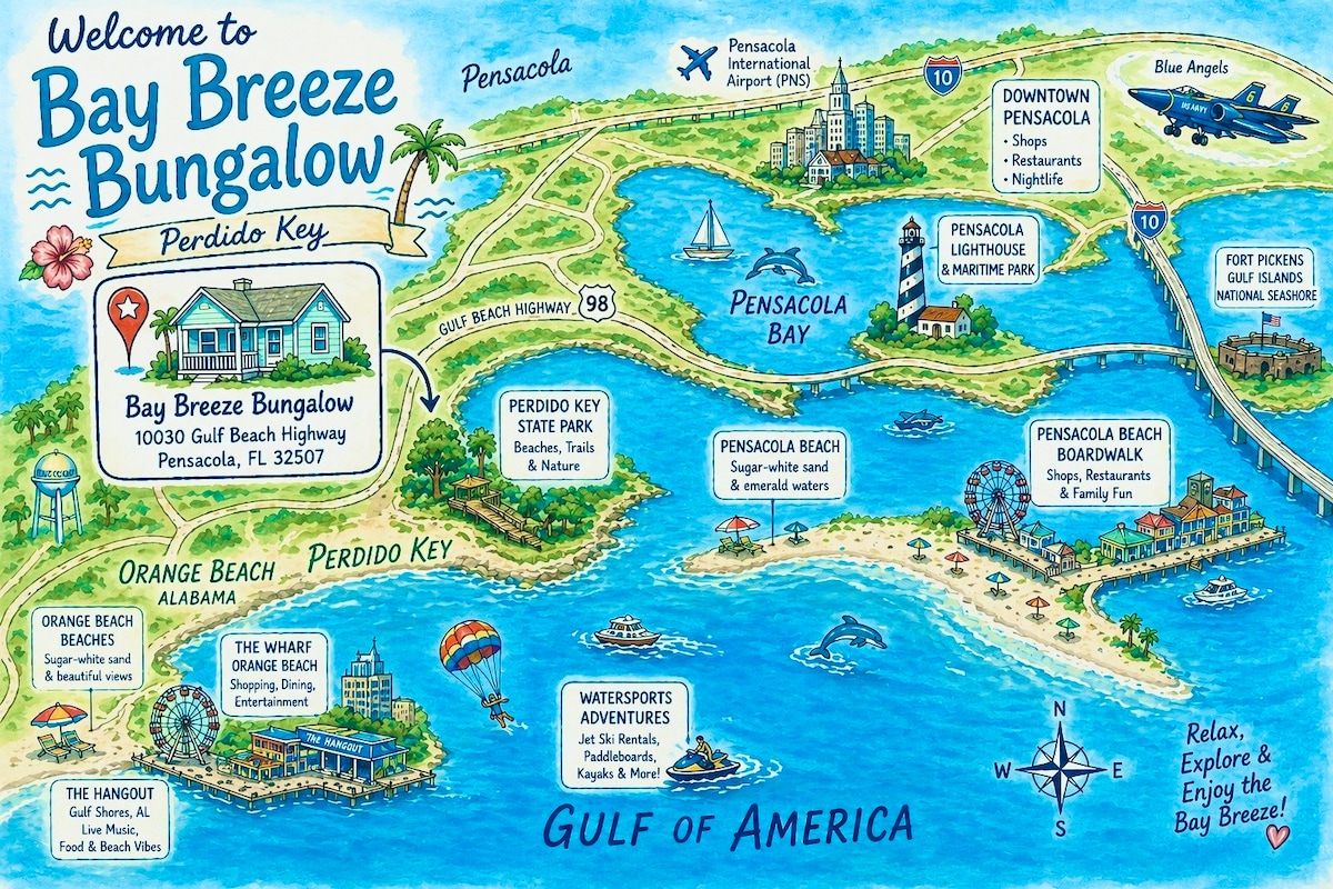 Üdvözlünk a kényelmes, új tengerparti otthonodban, amely percekre található az öböl menti állami parkok és strandok, éttermek, vízi túrák, túra- és kerékpárutak, horgászat, csónakázás, úszás és a Pensacola Naval Air Museum területén. Perdido Key Beaches are among the most beautiful beach found on the Gulf of America. Azok számára, akik szeretik a nyugalmat és a kikapcsolódást, de szeretnének közel lenni egész nap és a környék éjszakai életéhez, ez az. Több szállásra van szükséged? Nézd meg a szomszédos Osprey's Nestet!