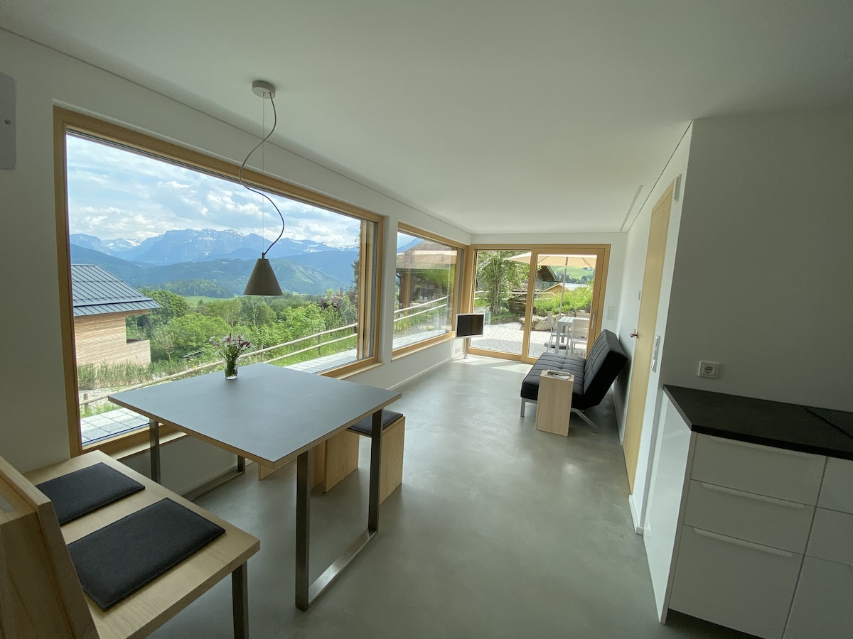 Az apartman Bregenzerwald közepén található, a napsütötte Lingenau faluban. 35 m2-es lakóterével két fő befogadására alkalmas. A lakás frissen és modernül berendezett 2019 nyarán konyha (2 indukciós lemezek, sütő, hűtőszekrény, mosogatógép), zuhanyzó, WC, mosogató és egy franciaágy. A lakás is saját nagy terasszal, csodálatos kilátással és egy szomszédos zöld rét.