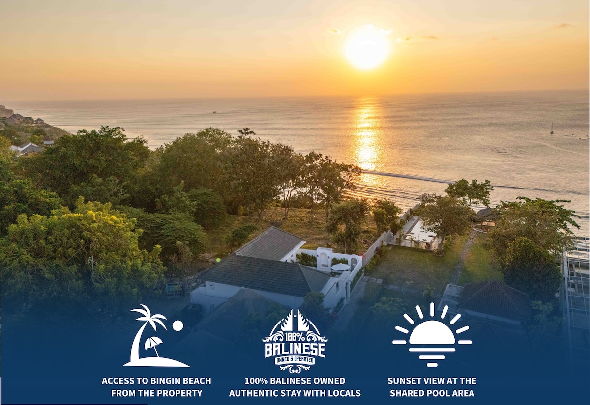 A Zyloh Sunset egy vadonatúj luxus 3Br villa, amely a Bingin Hill után keresett helyen található. A Zyloh Sunset egy modern, mediterrán, építészetileg tervezett villa, amely csúcsminőségű kényelmi szolgáltatásokkal rendelkezik, beleértve az édesvízi szűrést, a nagy sebességű wifit, a privát medencét és a mozit. A Zyloh látványos erkéllyel és tűzrakóhellyel büszkélkedhet, amely tökéletes hely arra, hogy lélegzetelállító naplementét nézzen egy tányér csokis fondü felett. Zyloh közvetlenül az Uluwatu főút mellett található, a Bingin strand pedig csak néhány percre található