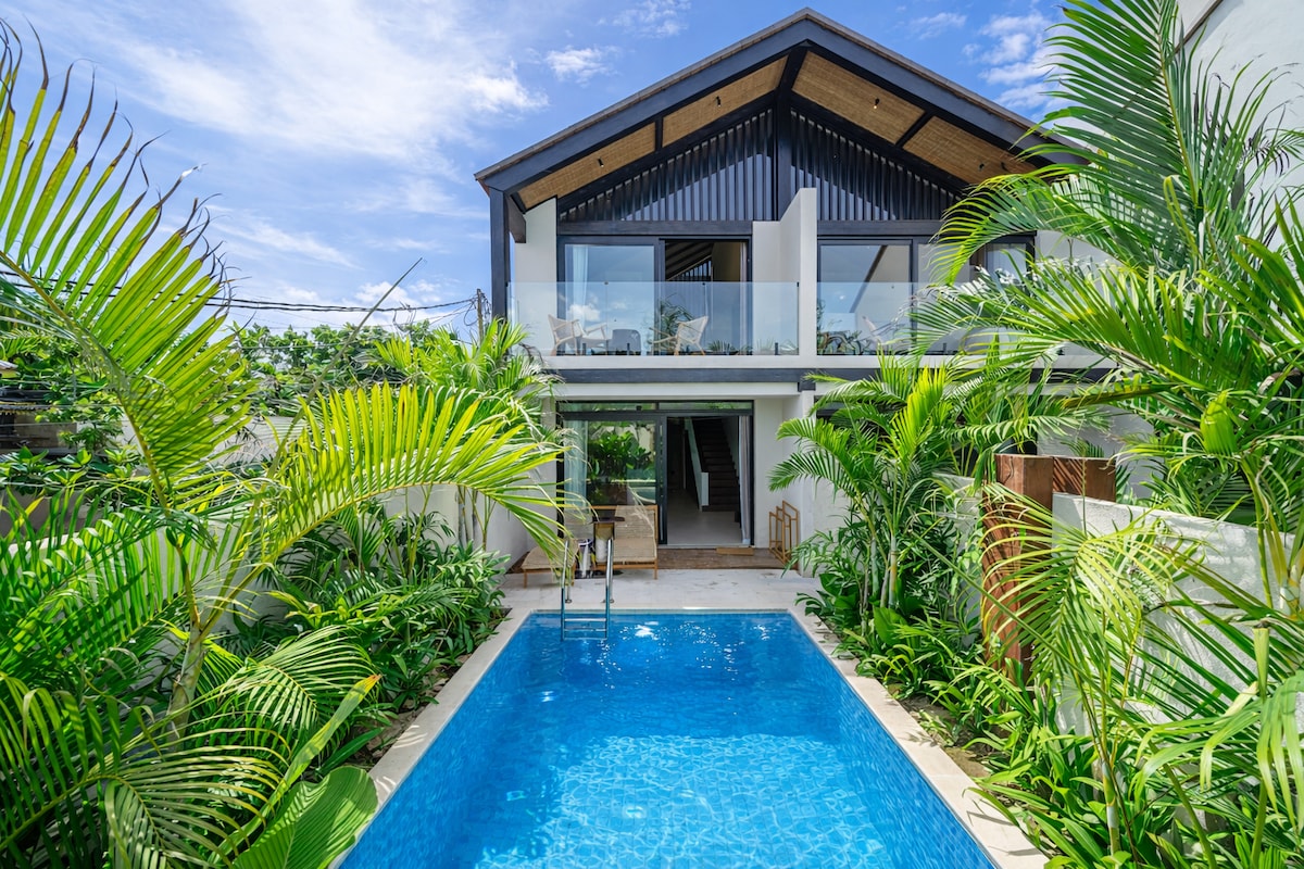 Vadonatúj dizájner villa a békés Jimbaranban • 2 stílusos, légkondicionált hálószoba saját fürdőszobával • Fő hálószoba luxuskádakkal a tökéletes kikapcsolódáshoz • Csillogó úszómedence és nagy szabadtéri terasz grillezéshez • Nyitott terű nappali és teljesen felszerelt modern konyha • 300 Mbps Wi-Fi munkához és streaminghez • Netflix, PS5 kérésre • Napi takarítás friss törülközőkkel és ágyneművel • Babaágy és etetőszék kérésre • Concierge szolgáltatás reptéri transzferhez, robogóbérléshez és egyebekhez