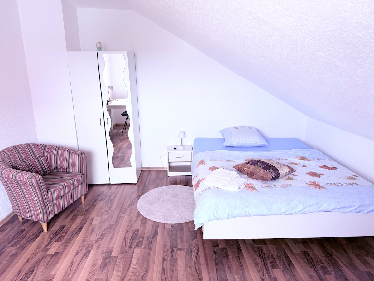 Nagy lakás a régi falu központjának közepén. A szálláshely kávéfőzővel, vízforralóval és hűtőszekrénnyel rendelkezik, konyha nem áll rendelkezésre. Az üzletek sétatávolságra vannak a folyótól. Az A5-ös és az A98-as autópálya a most, Bázel és Franciaország mindössze néhány perc alatt elérhető! A szálláshelyet két személy számára tervezték, Gyermekek számára nem megfelelő.