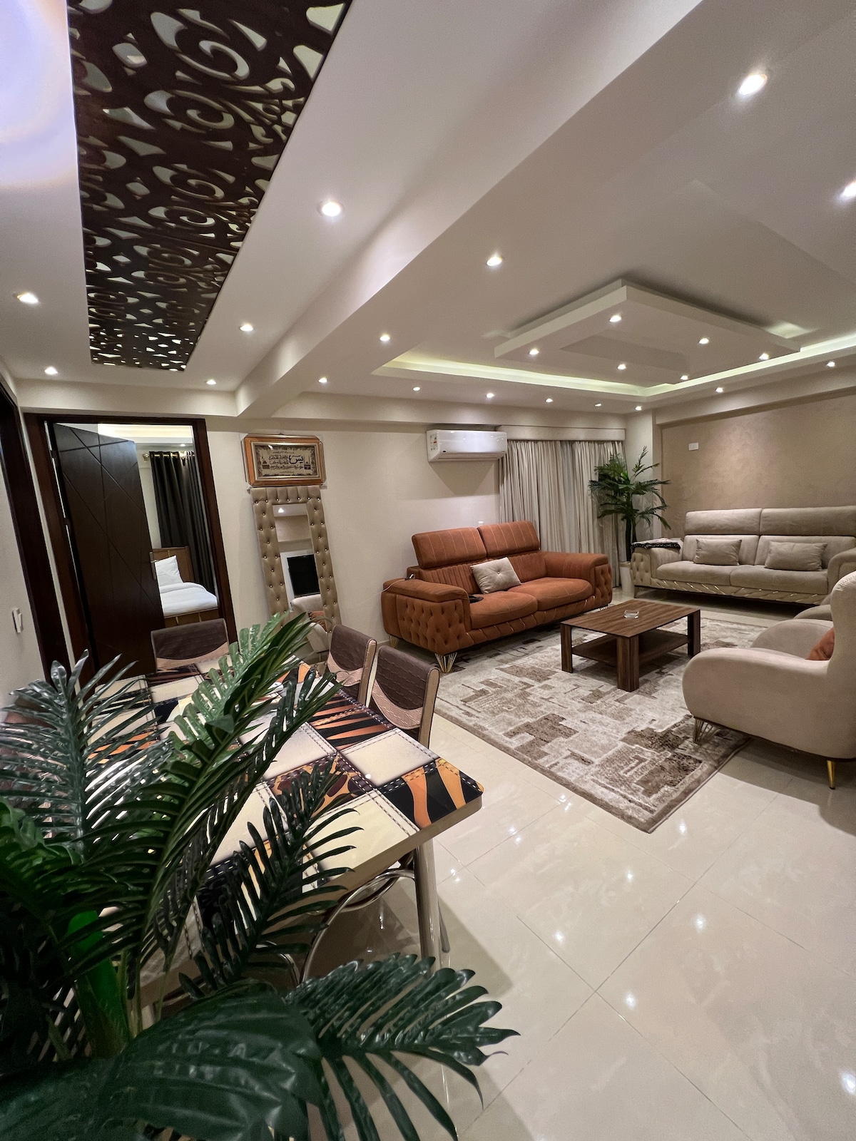 Az apartman Giza - Mohandiseen - Arab League Street legélénkebb helyén található, és felülről csodálatos kilátást nyújt. A családdal és barátokkal való nyaralásra tervezett, szállodaszerű hangulatú lakás fényűzően berendezett, hogy a vendégek a lehető legpihentetőbb élményt nyújtsák a szálláshelyen eltöltött idejük során. A lakás minden olyan elektromos kényelmi szolgáltatást biztosít, amelyre a vendégeknek szükségük van, 65 hüvelykes képernyőkkel a lakásban és hálószobákkal a filmes esték megtekintéséhez.