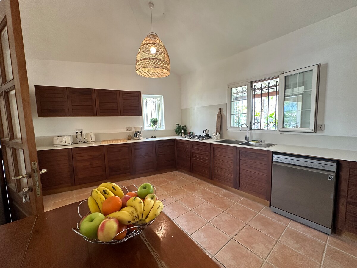 Üdvözlünk a Hibiscus Villában, egy újonnan épült, bali ihletésű búvóhelyen, amely 2 perc sétára található a La Preneuse strandtól. A csendes lakóutcában, a kávézóktól, szupermarketektől és ATM-től néhány lépésre található hely ideális kiindulópont a nyugati part nevezetességeinek felfedezéséhez :-Le Morne (20 perc), Tamarin (5 perc), Chamarel (20 perc), delfin- és lagúna-kirándulások, valamint aranyórás naplementék felfedezéséhez a parton. 150 m² -es, mégis meghitt, mégis szellős: tökéletes pároknak, családoknak, nászutasoknak vagy bárkinek, aki nyugodt, trópusi otthont keres a tenger mellett.