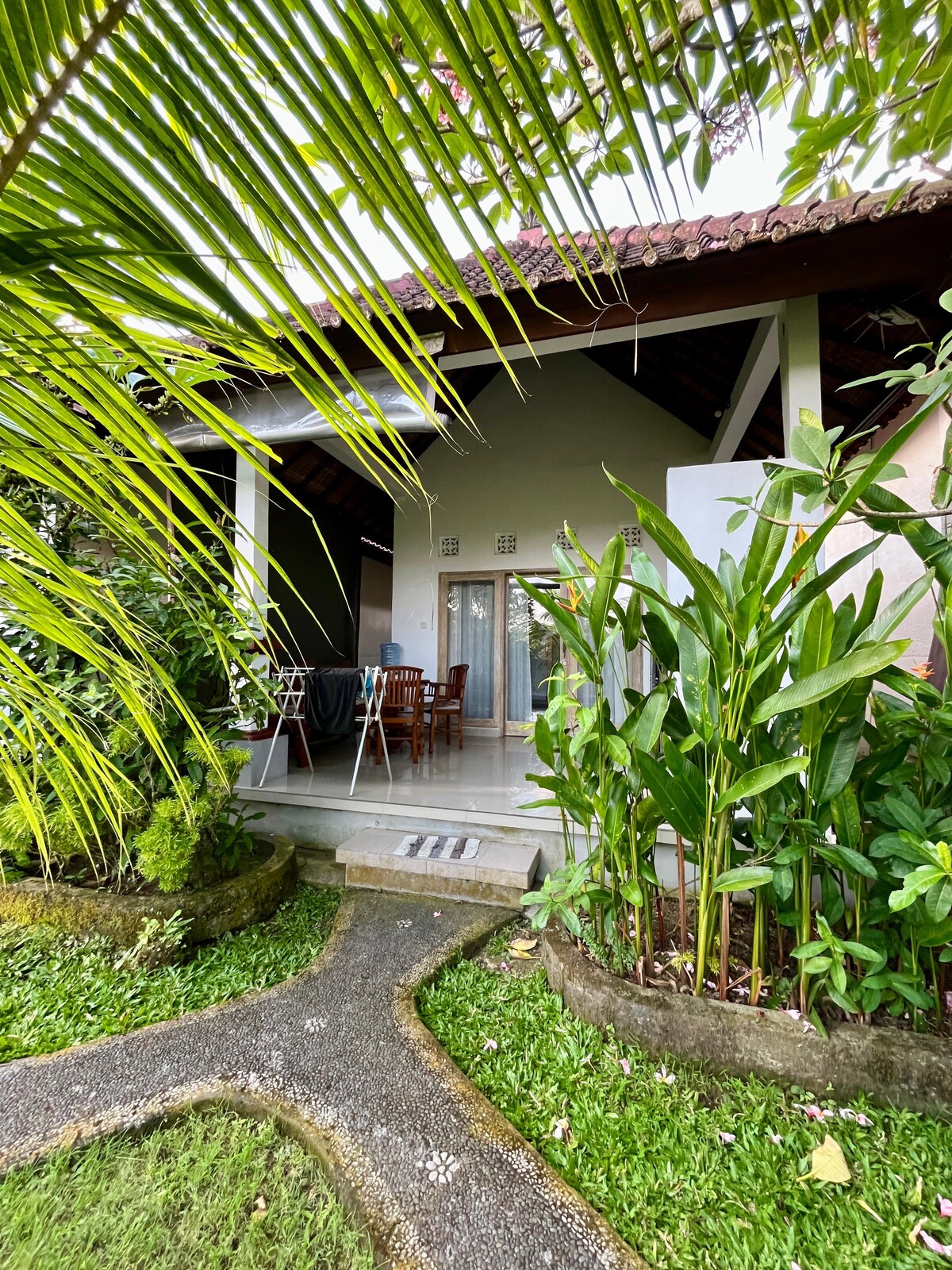 Fedezd fel a tökéletes kiruccanásodat a modern tervezésű bungalónkban Ubudban! A nyüzsgő Ubud piactól mindössze pár percre található, családi tulajdonban lévő ingatlanunk nyugodt menedéket kínál minden modern kényelemmel, amire vágysz. Tapasztald meg a tökéletes kikapcsolódást tágas, légkondicionált szobánkban, TV-vel és Netflix-szel a szórakozási igényeidnek megfelelően. Kényeztesd magad egy nyugtató fürdőben a fényűző fürdőkádunkban, egy kis kényeztetés egy napnyi felfedezés után.