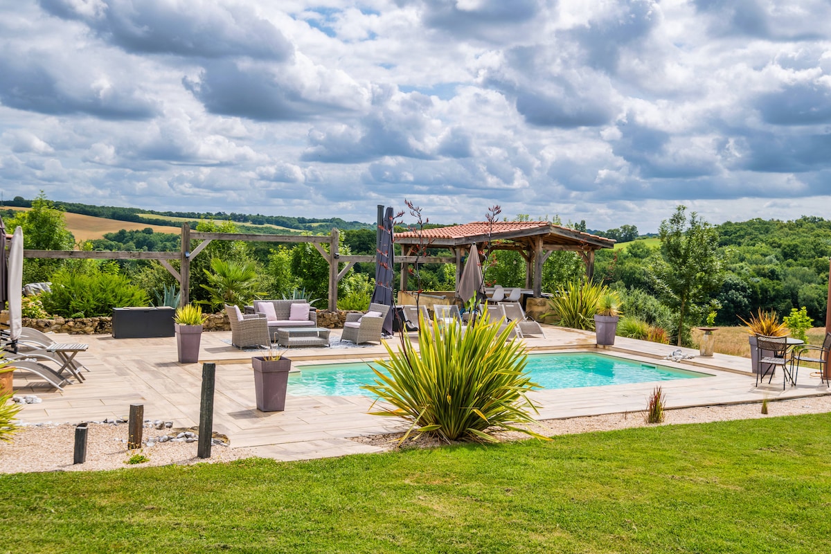 Gîte de charme avec vue, spa privé et piscine