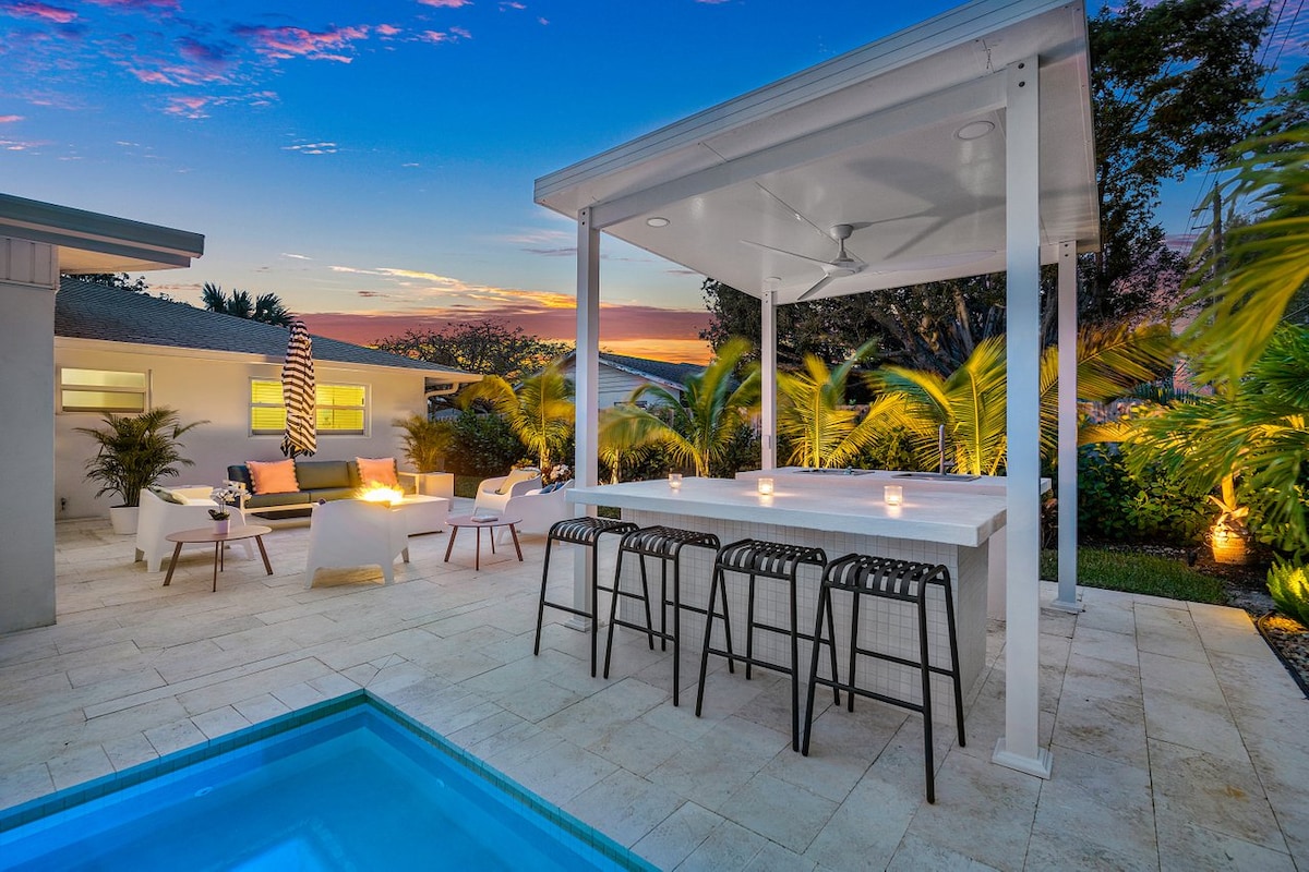 **3/2 Fűtött medenceház, békés privát hátsó udvar a Jupiter szívében! A Pelican Club, az éttermek, a golf és a kávé közelében. Gyönyörűen berendezett, századközepi modern tematikával ez olyan, mint egy nyaralás. Bőven van hely neked és a vendégeidnek pihenni a napozóteraszon, pihenni a napon, lehűlni a medencében, és élvezni a csendet és a nyugalmat. Grillezz, és élvezd a nyugtató naplementés szabadtéri vacsorát. Olvass egy könyvet, igyál egy koktélt, vagy szunyókálj egyet. Annyi ár-érték arány, hogy soha nem akarsz majd elmenni!