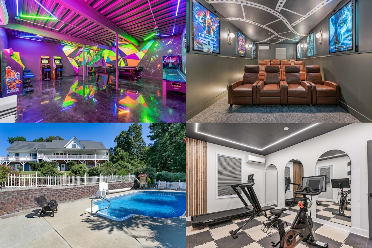 Welcome to Black Bear Lodge by AvantStay! ★ Recognized as one of our best. This home was a finalist in the 2025 AvantStay Awards, our annual celebration of top-tier stays. - Lakefront retreat with private covered dock + sandy beach - In-ground pool, hot tub, and expansive outdoor spaces - Luxe movie theater with stadium seating for 14 - Wrap-around porch + firepit for lakeside nights - Game-ready amenities: pool table, board games, and large rec spaces