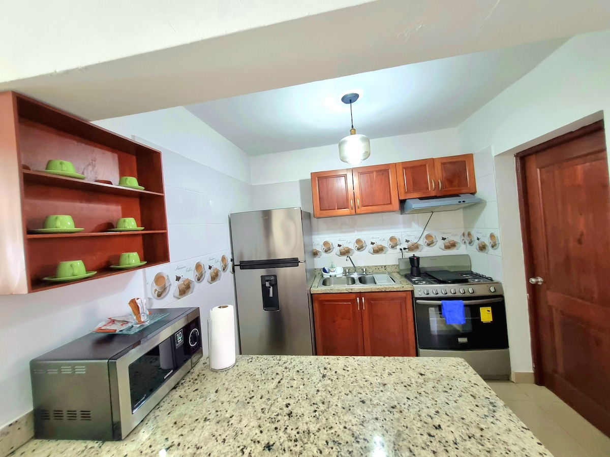 Ven y disfruta nuestro apartamento de 1 Hab. equipado completo, se encuentra en el centro de la ciudad de Santo Domingo y a corta distancia de los principales centros comerciales de la ciudad. - El apartamento es completamente tuyo. - 1 lugar de estacionamiento disponible. - Un Dormitorio con cama Queen, colchón, sábanas, edredón y almohadas - Smart TV LED solo en la sala. - Baño moderno. - Aire acondicionado en dormitorio y salón. - Agua caliente. - Lavadora y secadora. - Cocina completa.