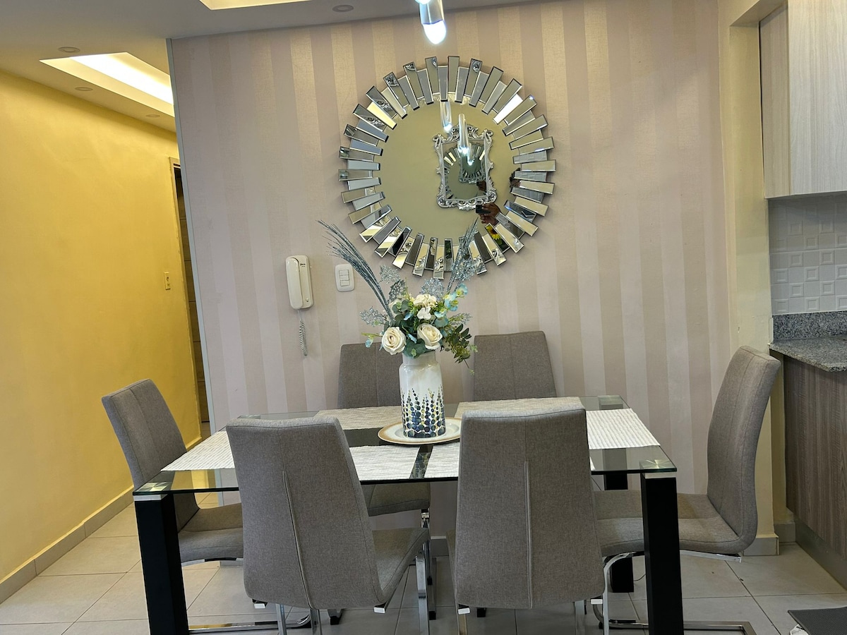 Modern apartman egy luxus toronyház 14. emeletén, központi helyen, Santo Domingóban. 1 hálószoba, fürdőszoba, nappali, teljesen felszerelt konyha, mosókonyha, erkély és 2 fedett parkolóhely. Legfeljebb 4 férőhelyes. Épület kényelmi szolgáltatásai: medence, edzőterem, közösségi terasz, gyerekrészleg, kocogópálya, grill, szauna és gyógyfürdő. 24/7 biztonság. Tökéletes családok vagy üzleti utazásokhoz.