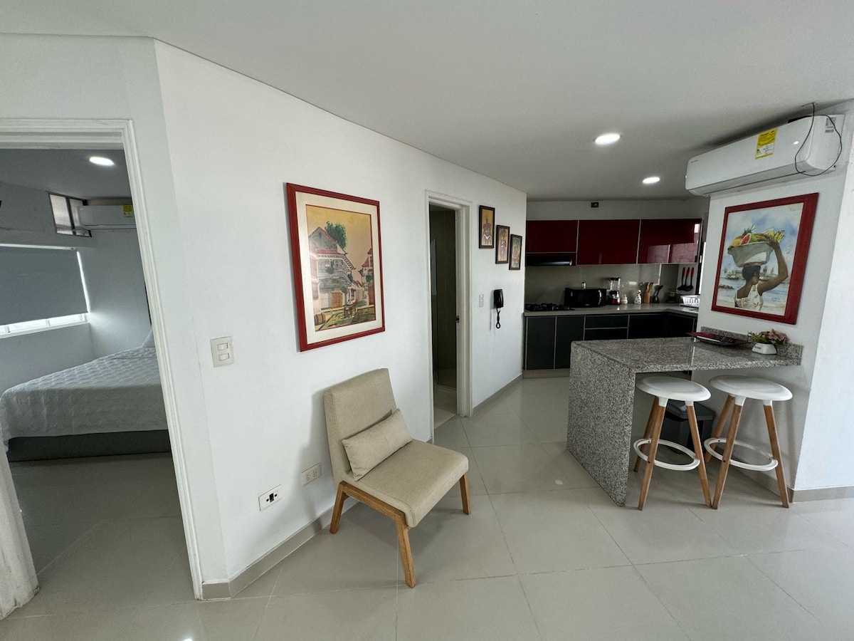 One bedroom apartment with an amazing view on the 20th floor. Located less than 10 min. away (by taxi) from the Old City, and around the building you can find tons of places to eat or drink anything you want… It's your perfect hub for your next visit to Cartagena! The building has a 24/7 concierge and an outdoor swimming pool (as well as another one for kids) as well as sauna, jacuzzi and gym. Please keep in mind that only registered guests are allowed to access the building.