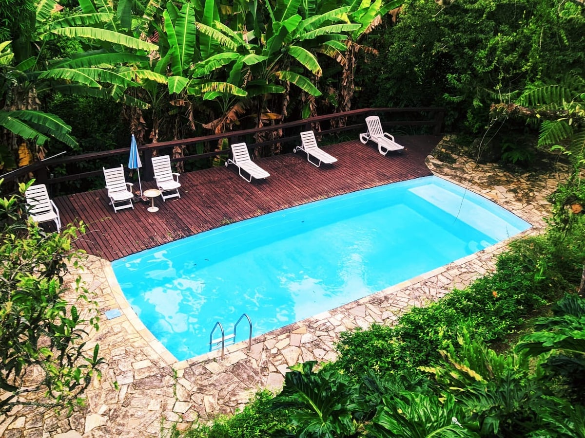 Pihenj ezen a csendes, stílusos helyen, ahol van medence és Seca szauna a kényelem és a kikapcsolódás érdekében! A Casa Sítio dos Dwarves egy rendkívül különleges hely a természet közepén, gyönyörű hegyekkel, közel a vízesésekhez, ösvényekhez, erdőkhöz és folyókhoz, számos felfedezésre, élményre és élményre váró hellyel. A Sítio dos Dwarves menedéket nyújt azoknak, akik nagyon szeretnék elhagyni a futást, napról napra futni és stresszelni a várost. Gyere, és lépj kapcsolatba a természettel, pihenj és érezd jól magad!!!