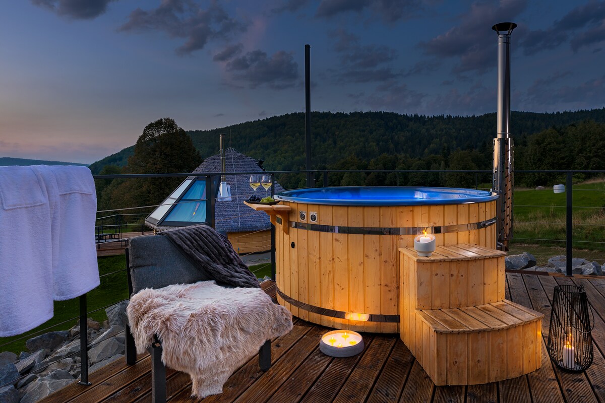 Domek DeLuxe w górach szauna jakuzzi pezsgőfürdő medence