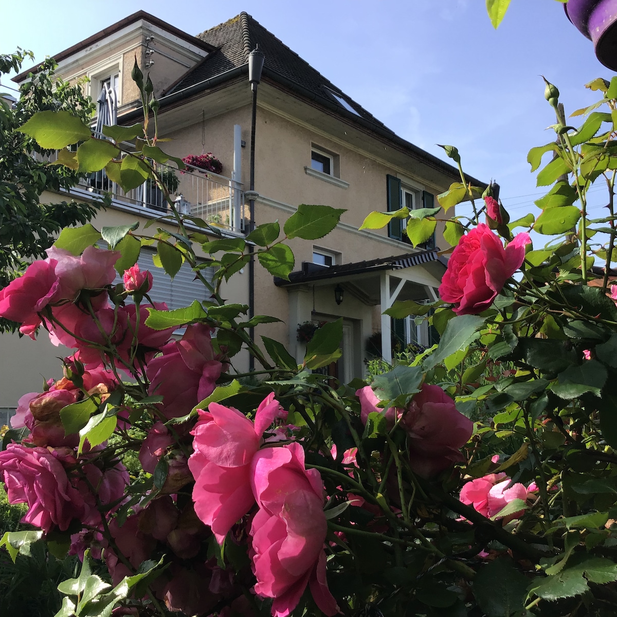 A vendégeinknek saját lakásuk van, de csak egy bulira adják ki. Két kétszemélyes ággyal és egy egyszemélyes ággyal rendelkezik. Babaágy kérésre. A lakás a 2. emeleten található, lépcsőn megközelíthető (lift nincs), de nagyon csendes, és nagyszerű kilátás nyílik Munotra, Rajnára és Schaffhausenre. Schaffhausen városa gyalogosan 10 perc alatt elérhető. Az autód parkolását mi biztosítjuk. Nagy tetőterasz a zavartalan napozáshoz.