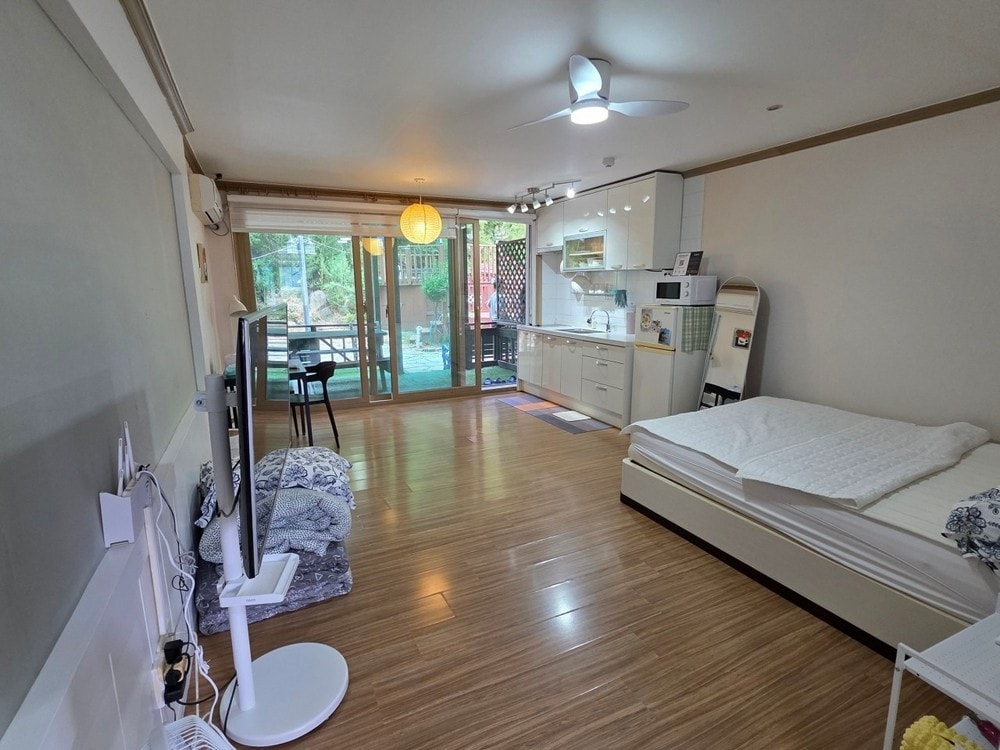 Guryongpo privát apartman (óceánra néző kilátás, napkelte a verandán, a Guryongpo piac közelében, a kamélia virágzásának helyszíne)