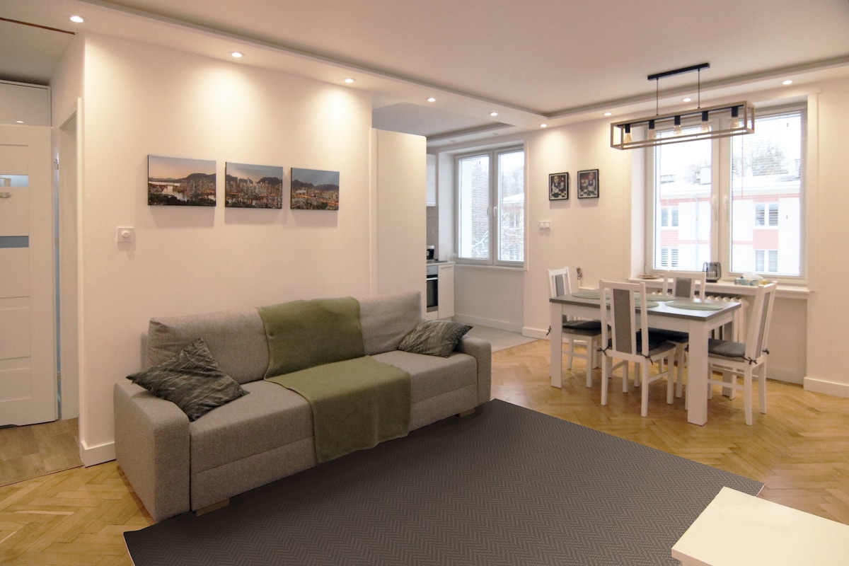 Oferuję klimatyczny apartament z pełnym wyposażeniem które ułatwi Państwu pobyt Apartament znajduję się w nowoczesnym, monitorowanym budynku ,przystosowanym również dla osób niepełnosprawnych , w pobliżu znajdziemy liczne lokale , sklepy ,kawiarnie ,restaurację . Zaletą jest położenie lokalu w pobliżu trasy S8 oraz bardzo dobra komunikacja autobusy, tramwaje. Metrem dojedziemy do ścisłego centrum Świętokrzyska oraz pod Stadion Narodowy. Ułatwieniem jest bezkontaktowy check-in.
