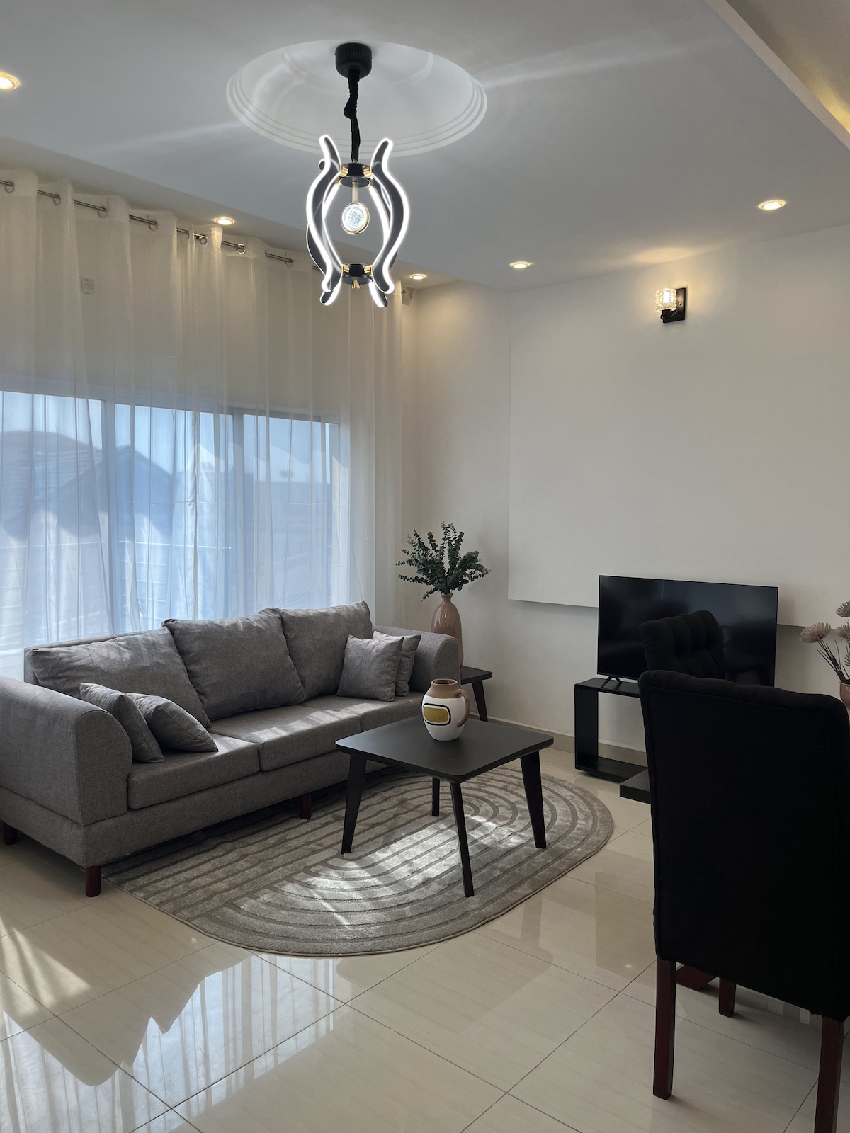 Pihenj és élvezd Doualát ebben a csendes, elegáns lakásban: - Meleg és elegáns nappali - Ortopéd matrac - Korlátlan Wi-Fi-kapcsolat - Netflix és helyi csatornák - Meleg víz minden szobában - Teljesen felszerelt modern konyha - 5 percre a bankoktól és szupermarketektől - Ingyenes helyszíni parkolás - 7/24 biztonsági őr - Szobaszerviz - Légkondicionálás az egész házban - Kerti erkély hintával és kilátással a városra - Feltöltős árammérő