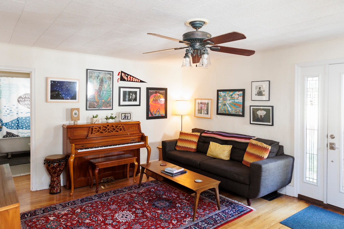 Pihenj az egész családdal ebben a békés, tágas, privát otthonban, egy csendes, lombos környéken. Kevesebb mint 1 mérföldre az I-70-től és 4 mérföldre a belvárostól/kampusztól/MU és Boone kórházaktól. Háziállat- és gyerekbarát, tágas, biztonságosan bekerített hátsó udvarral és cementterasszal, tűzrakóhellyel, faszéngrillel, kültéri bútorokkal és vászon árnyékkal. A hangulatos, modern belső térben a tulajdonos 40 eredeti festménye és egy elektromos kandalló található.