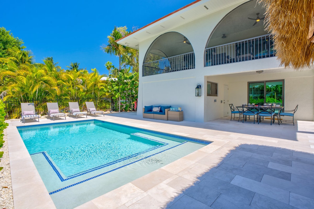 Casa De Cayo – Vízparti kulcsok kiruccanása Tropical 3Br + cabana just 1 mile from Sombrero Beach! Élvezd a luxusmedencét, a tiki kunyhót szabadtéri konyhával és tévével, a 40 láb hosszú dokkot (a csónakemelőt a vendégek nem használhatják) elektromos, víz- és pótkocsiparkolóval, valamint a kajakokat, az evezős deszkát és a mangrove csónakot. A szabadtéri játékok egy luxus tájon teszik teljessé a tökéletes szigeti kiruccanást.