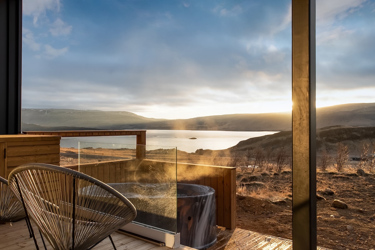 Élvezd a vízesésre néző pompás kilátást: a hegy a Norðurá-völgy felett tornyosul északon, és a Skarðsheiði hegyvonulatra délen. A szálláshely a Reykjavíktól egy órányi autóútra található Borgarfjörðurban található. Egy nagy magánterületen található, ahol nyugalomra és pihenésre lelhetsz. A fatüzelésű kandalló ropogása otthonos hangulatot teremt a belső terekben, míg a szauna tökéletes a kikapcsolódáshoz a terület végtelen túraútvonalainak és túráinak felfedezése után.
