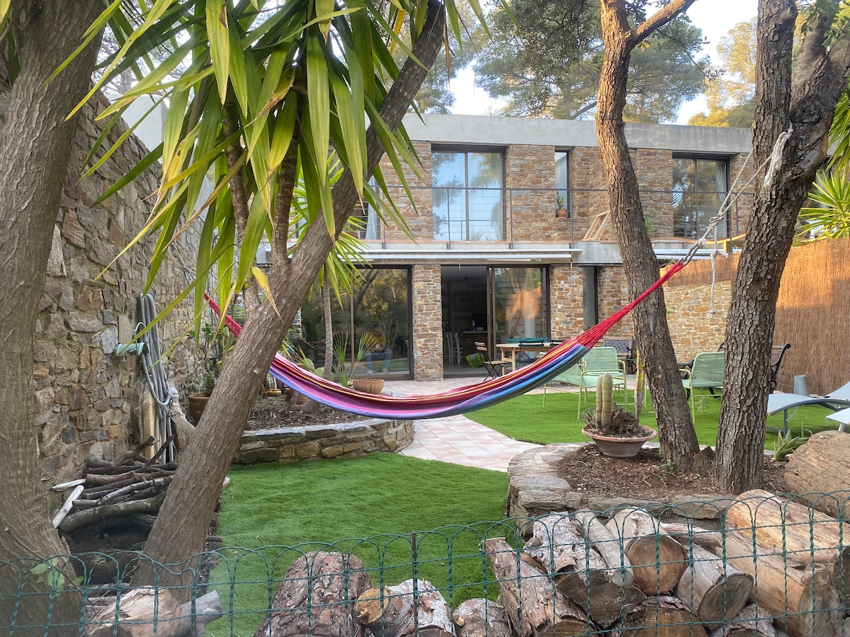 Pihenj meg ezen a békés helyen, amelyet a természet vesz körül. Lélegzetelállító kilátás a hegyekre (Les Maures) és a tengerre. 5 perc sétára a természetvédelmi területtől vagy a közös medencétől/teniszpályáktól/pingpongtól/hintáktól (ingyenes hozzáférés). Nemrég felújított és teljesen légkondicionált/fűtött. Elkerített. Új babaágy, pelenkázószőnyeg és etetőszék kérésre. Strand a közelben: 15 perc autóval vagy 30 perc biciklivel. Csendes irodahelyiség wifivel. Ágynemű és ágynemű biztosított. 7 ágy/hálószoba, 2 kanapéágy/nappali.