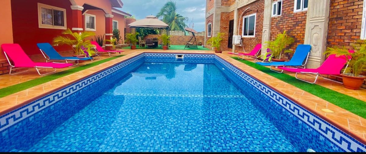 Enjoy a stylish retreat with Fast WiFi Starlink, Smart TVs, a Rooftop, Private Pool, Elegant Interiors, and a Fully Equipped Kitchen. Perfect for families, couples, remote workers, and business travelers. Located just mins from Bojo & Kokrobite Beach. Close to Beaches, Restaurants, Parks, Museums, Markets, and Lounges. Relax on the breezy balconies, fire up the BBQ in the garden, or catch sunsets from the rooftop terrace Book your stay at Sugarville where comfort meets coastal charm in Accra!