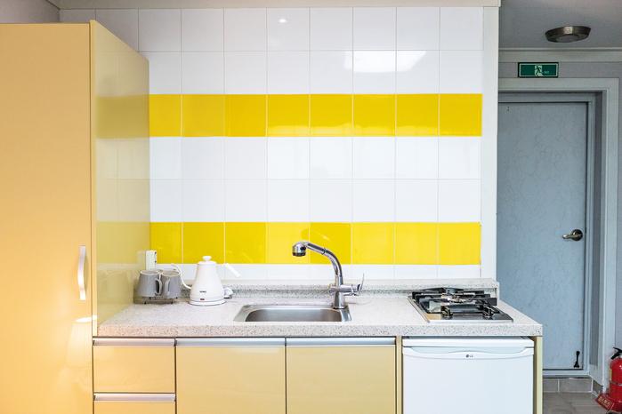 율이네집은 1층 전체를 한 팀이 단독으로 사용하는 구조입니다. 패밀리룸 (넓은 거실 + 침대방) 과 원룸형 객실 2개 이렇게 총 3개의 객실을 사용하실 수 있기에, 대가족이나 여러 가족이 함께 오셔도 낮에는 즐겁게 소통하고 밤에는 각자의 공간에서 편안하게 휴식하실 수 있습니다. 침대는 패밀리룸에 퀸 사이트가, 원룸형 객실에는 더블 사이즈 침대가 있으며, 나머지 원룸형 객실에는 저상형 침대로, 싱글 1개, 더블 1개가 준비되어 있습니다. 이 외에도 거실에서도 주무실 수 있도록 이불과 베개를 제공해드리고 있습니다. 마지막으로, 모든 객실에는 화장실, 냉장고, TV, 에어컨이 구비되어 있어 대가족이나 장기 숙박 시에도 내 집처럼 편안하게 머무실 수 있습니다.