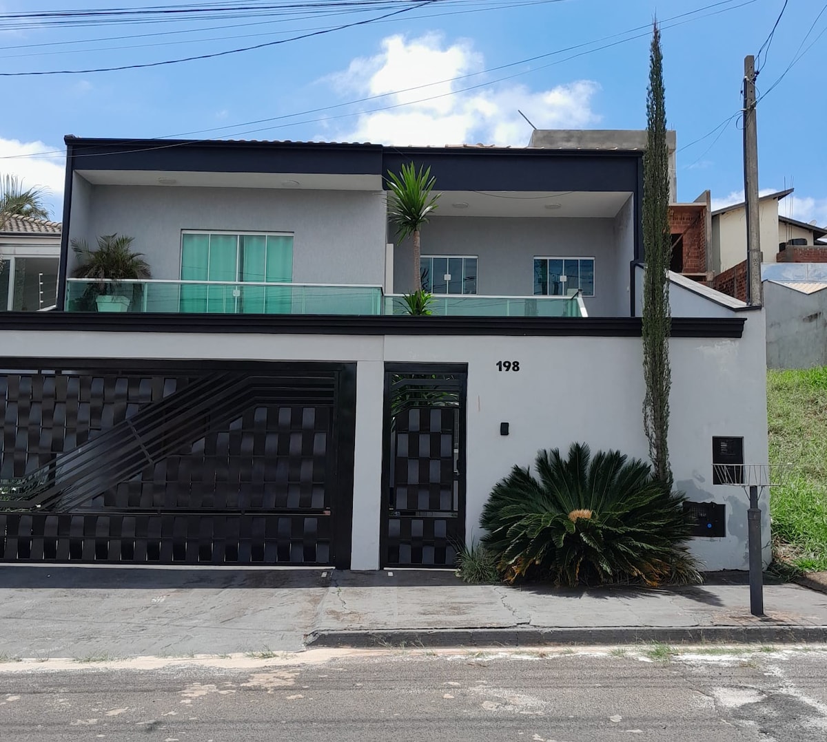 Egyedi villa lakosztállyal, közös fürdőszobával és lakosztályos fürdőszobával, két zuhanyzóval, függőágyas erkélyekkel, növényekkel, fedett garázzsal, elektronikus kapuval. Retró videojátékok! Casa Connected az Alexával! Demétria, Bioethicus Institute, Embraer, Caio mellett, 7 percre a központtól, Hospital Psiquiatrico, SARAD, FATEC, 10 percre Rubiãótól, 15 percre Lajeadótól. Csendes, csendes és biztonságos hely. A ház konyhát, mosógépet, fazekakat és kávéfőző eszközöket kínál. Négy fő fér el benne!