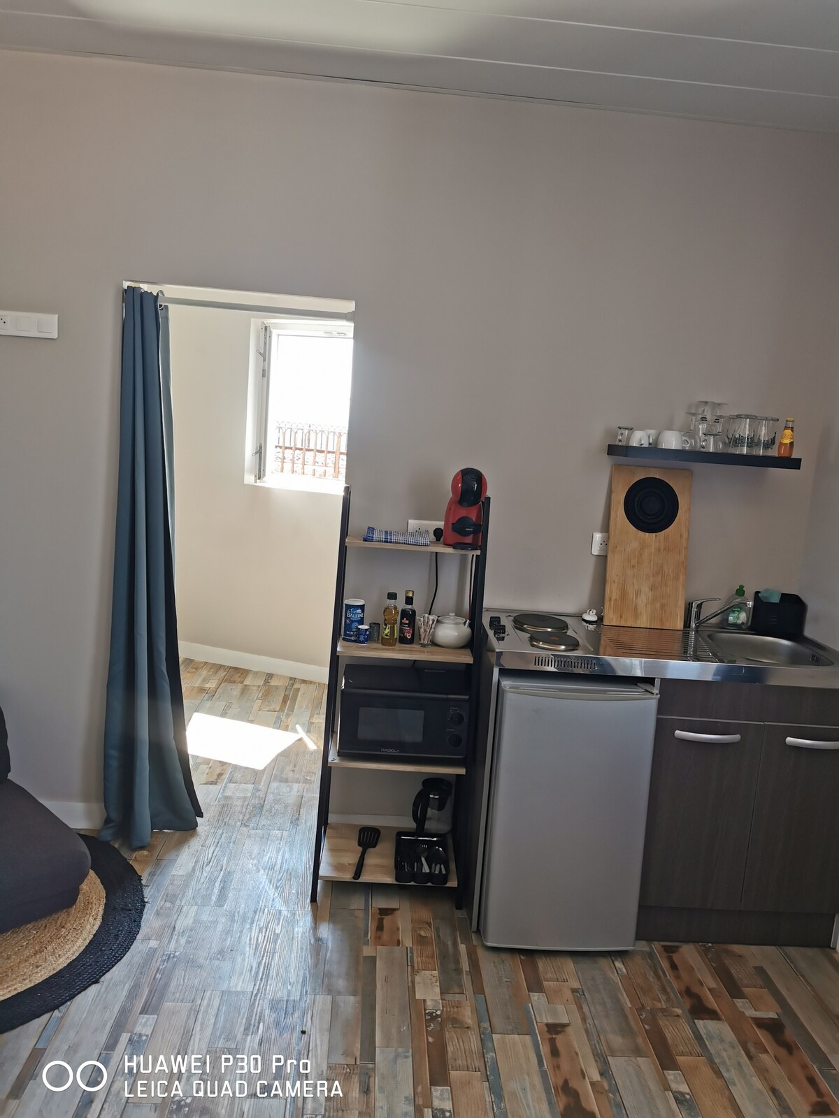 The studio, which can sleep up to two people, includes: a living room with bed, an office area, a fully equipped kitchen (glass ceramic stovetop, refrigerator, microwave, dishes...), a bathroom, a flat-screen television (satellite), and a safe. The maximum accommodation capacity is 2 people and one child under 3 years old.