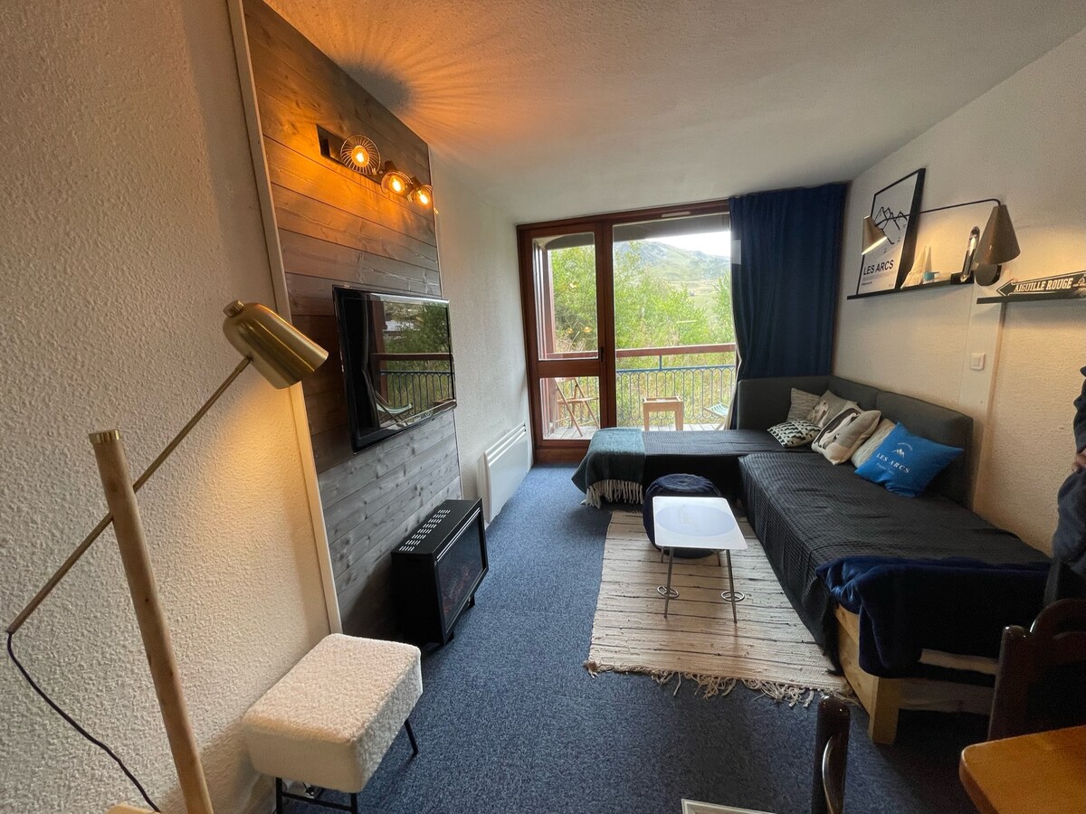 Loue appartement chaleureux, rénové avec soin, aux Arcs 2000. Situé au 4ème étage pour 5 personnes dans la résidence "Le varet" qui a un accès direct sur les pistes (par l’arrière de l’immeuble). Vous profiterez d'une vue imprenable sur les pistes sans vis à vis depuis le séjour. L'APPARTEMENT de 30 m2 se compose d'une pièce de vie lumineuse et spacieuse pour partager de bons moments en famille ou entre amis. 3 lits simples couchages 1 lit double 1 lit bébé Wifi Service de conciergerie