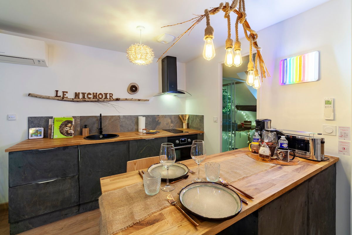 Merülj el a bábos hangulatban a nichoir-témájú dekorációnkkal. Pihenj egy függőágy székében vagy hintában, és élvezd a jóllét pillanatát a teljesen felszerelt masszázsasztalunkkal. Az intelligens TV hozzáférést biztosít a Prime Video, a Netflix és a Disney+ szolgáltatáshoz a pihentető estékhez. Tökéletes szállás a kényelem és a kikapcsolódás szerelmeseinek