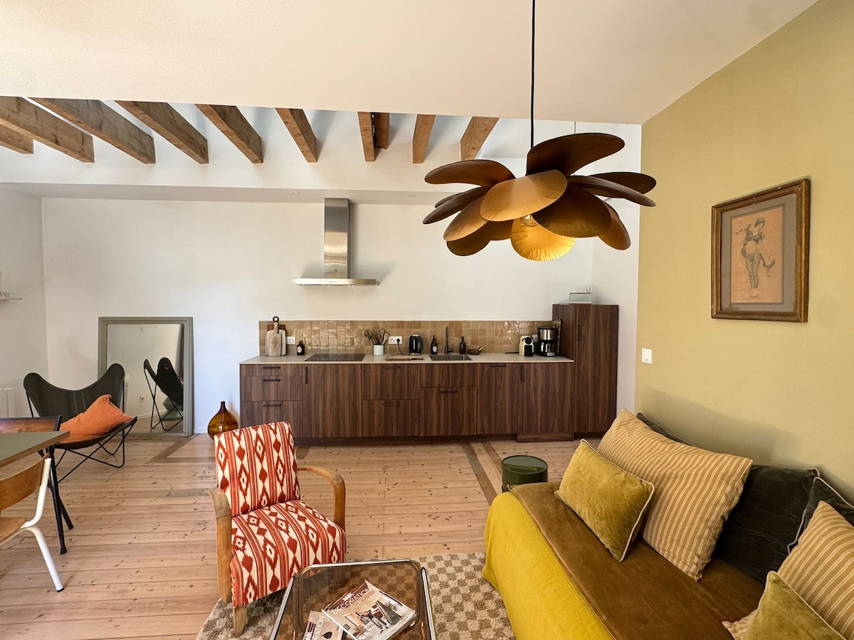 Ce loft climatisé est unique, il est situé en plein coeur du centre historique tout en étant au calme au fond d'une cour à proximité immédiate des Hospices. Il possède une vue incroyable sur la place Carnot et même sur le clocher des Hospices. Nous l'avons entièrement rénové et décoré avec des matériaux nobles de qualité. Plafond cathédrale impressionnant de 6m de hauteur, très lumineux. Parking gratuit à proximité, restaurants et commerces sur la place. Tout équipé et arrivée 24/24