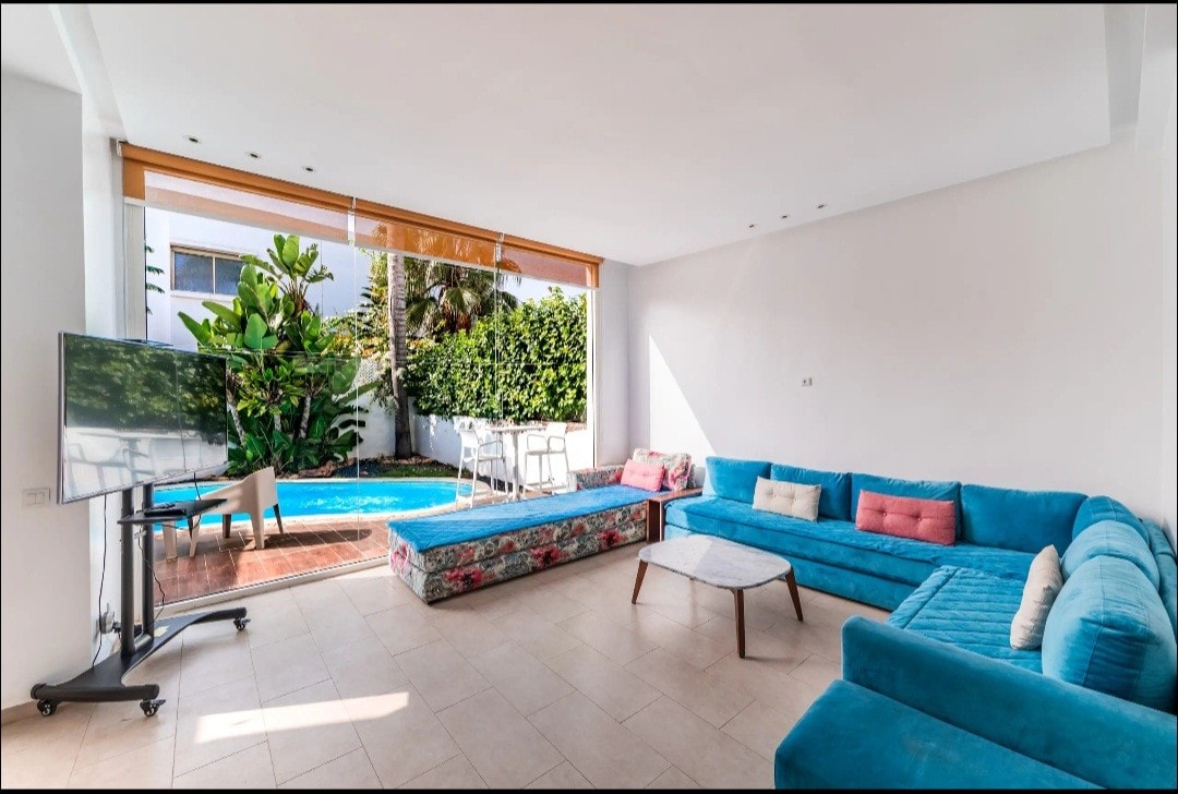 Üdvözöljük a Villa Casadiaa-ban, egy modern, 4 hálószobás üdülőhelyen, saját medencével, edzőteremmel és irodával, amely egy biztonságos luxusrezidenciában található, tenisz-, padel- és focipályákkal. A kényelemre és stílusra tervezett szálláshely 3,5 fürdőszobát, világos nappalit, szabadtéri társalgót és prémium fitneszfelszerelést kínál. Tökéletes családoknak vagy csoportoknak, akik helyet, nyugalmat és üdülőhelyi kikapcsolódást keresnek. Ideális a casablancai ingázáshoz, közvetlenül a Ville verte mellett.