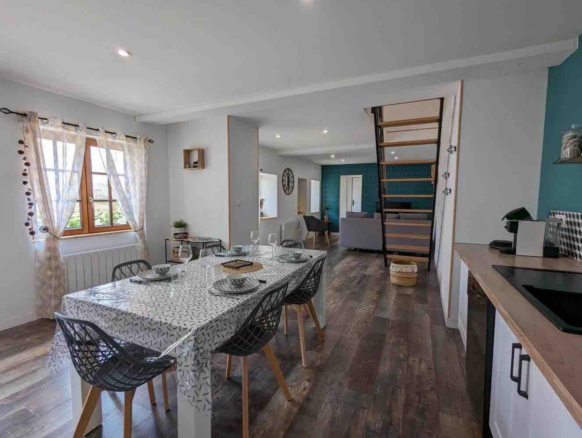Pihenj ebben a csendes és elegáns vidéki szálláshelyben egy régi házban. Nappali 2 kanapéval és konyha nagyon funkcionális teakonyhával. Nagy hálószoba öltözővel. Nagy fürdőszoba zuhanykabinnal. Gite a tulajdonosok házának szárnyában, külön terasszal. Nyáron egy úszómedence áll a rendelkezésedre.