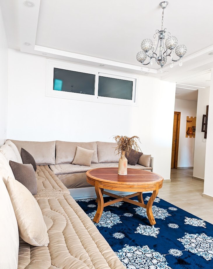 Bienvenue dans notre appart confortable à M’diq, idéal pour vos vacances en famille ou entre amis. Il dispose de 2 grandes chambres, 3 lits et peut accueillir jusqu’à 5 personnes. Vous profiterez de 2 grands balcons pour vous détendre. L’appartement est au centre, proche de tout : plage, commerces, restaurants. Il est entièrement équipé : vous trouverez tout ce dont vous avez besoin pour un séjour confortable. Besoin de quelque chose ? Madame Nadia est disponible à tout moment pour vous aider.