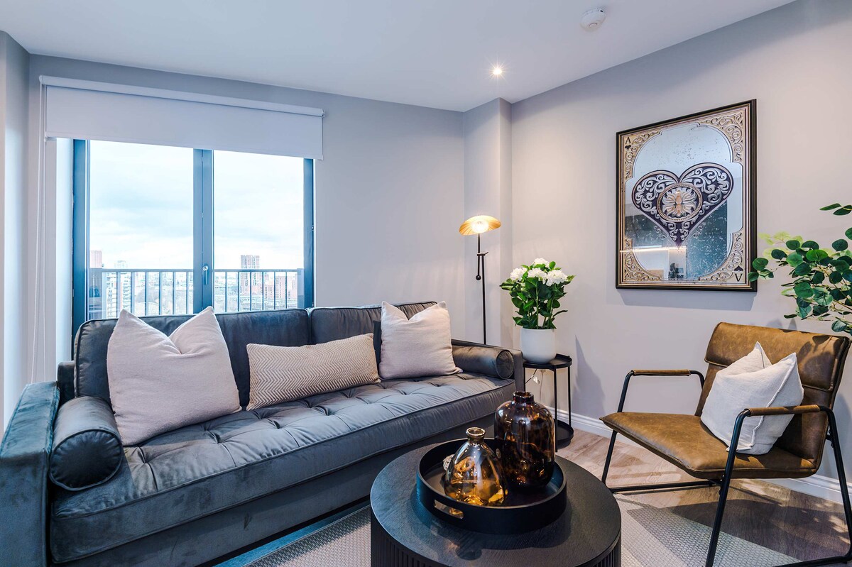 Discover your chic retreat in the heart of Leeds! This brand-new, 2-bed, 2-bath apartment comfortably fits 4 guests. Featuring a modern design, a fully equipped kitchen, and a private juliette balcony with city views, it's the perfect base for leisure or business. Enjoy sophisticated city living on the 10th floor with all the comforts of home.