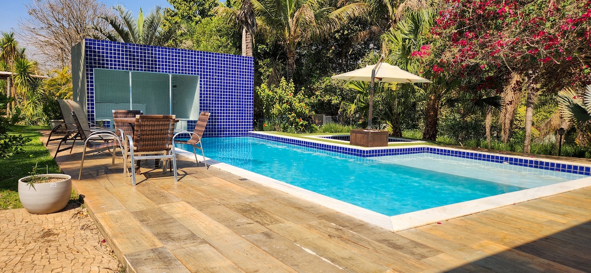 Kattints a foglaláshoz, és foglald le a szálláshelyet teljes nyugalomban! A Casa Mahalo tökéletes a család és a barátok összegyűjtésére Brazíliában nyaraláskor! Teljes hely legfeljebb 10 vendégnek. Fűtött medencével és jakuzzival, vízeséssel, teljes barbecue-berendezéssel, privát légkörrel és kényelmes terekkel, nagy sebességű Wi-Fi-vel. A Botanikus Kertben található, elzárt társasházban található, 25 percre Brazília központjától, 24 órás biztonsági szolgálattal és bőséges kereskedelemmel a társasház közelében. Foglalj szállást, és érezd jól magad!