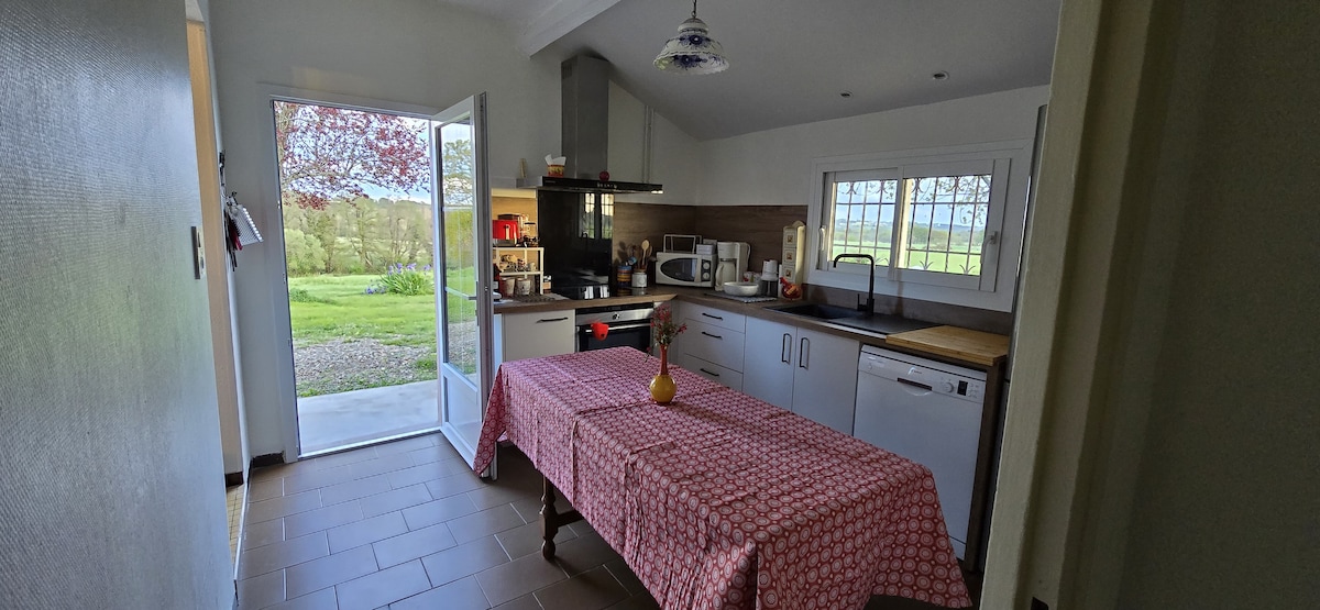 CETTE ENDROIT AU CALME FAIT LE BONHEUR DE NOS VACANCIERS ET OUVRIERS QUI TRAVAILLENT DANS LE COIN Le gîte vient d'être rénové décoré avec goût et fonctionnel Linge compris Pas de maison autour Pas de danger pour les enfants Cadre magnifique et reposant entouré de champs et de prés Vous pourrez profiter du salon de jardin sur la terrasse ombragée en apercevant les belles montagnes pyrénéennes à l'horizon si le temps le permet Literie neuve Plancha Barbecue Ping-pong baby foot jeux...
