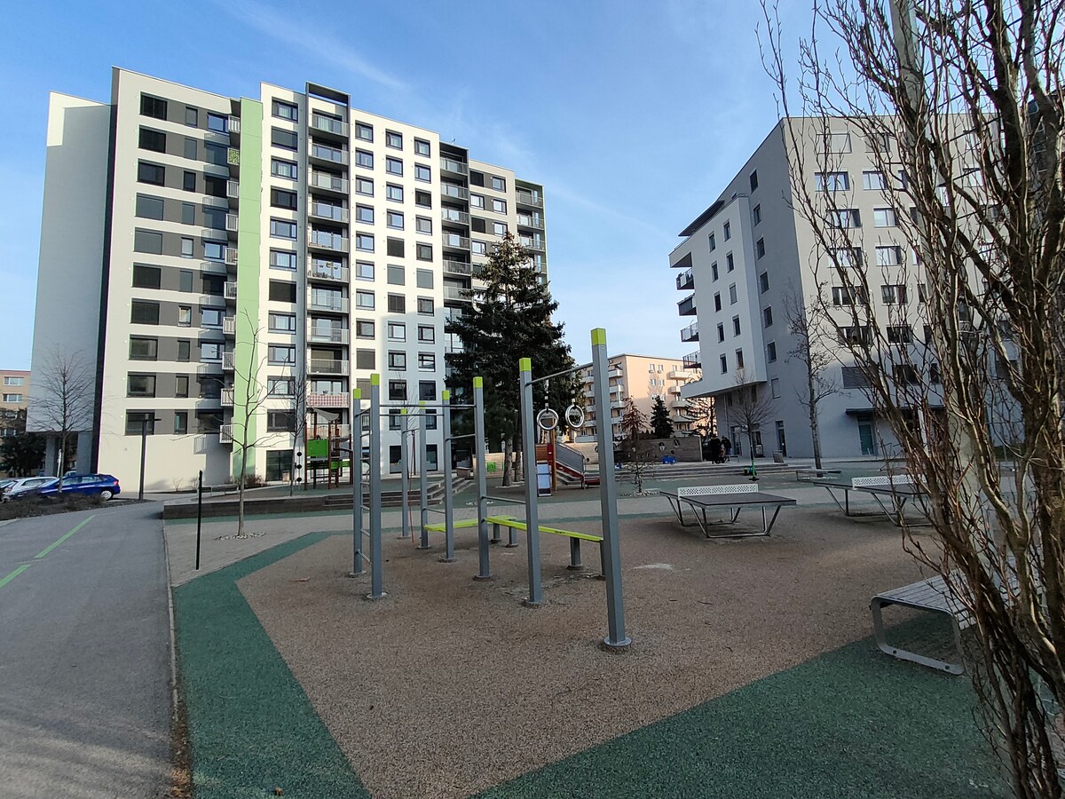Vadonatúj lakás az Urban Residenceben (2021-ben épült). Tökéletes elhelyezkedés - csendes és közel a városközponthoz, nagyszerű tömegközlekedési kapcsolatokkal (főpályaudvar 8 perc, központi buszpályaudvar 17 perc, Pozsonyi repülőtér 25 perc). Parkolás az épületen belüli garázsban. Ráadásul a lakás zöld energiát is használ. Függetlenül attól, hogy üzleti útra vagy városlátogatásra érkezel Pozsonyba, itt minden készen áll, hogy kényelmesen érezd magad, és jól érezd magad!
