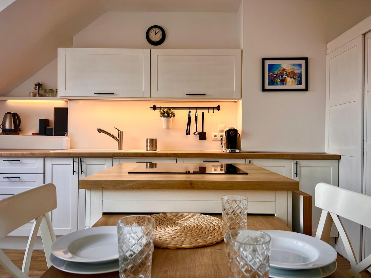 Új, gyönyörű, berendezett lakás parkolóval