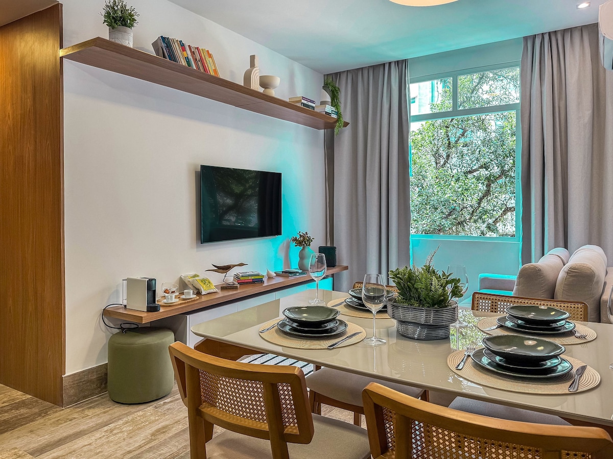 Épület parkolóval, úszómedencével, szaunával, edzőteremmel és pezsgőfürdővel. Kényelmes, funkcionális és jól berendezett hely, ahol minden megtalálható: teljesen felszerelt konyha, légkondicionáló, Wi-Fi és okostévé. Közel a metróhoz, szupermarketekhez, gyógyszertárakhoz, a Botafogo Praia Shoppinghoz, a Rio Sul Shoppinghoz, valamint Rio néhány legmenőbb bárjához és étterméhez – Arnaldo Quintela és Nelson Mandela. Tökéletes azoknak, akik kényelmet és kiváló elhelyezkedést keresnek Rio de Janeiro egyik legbájosabb környékén.