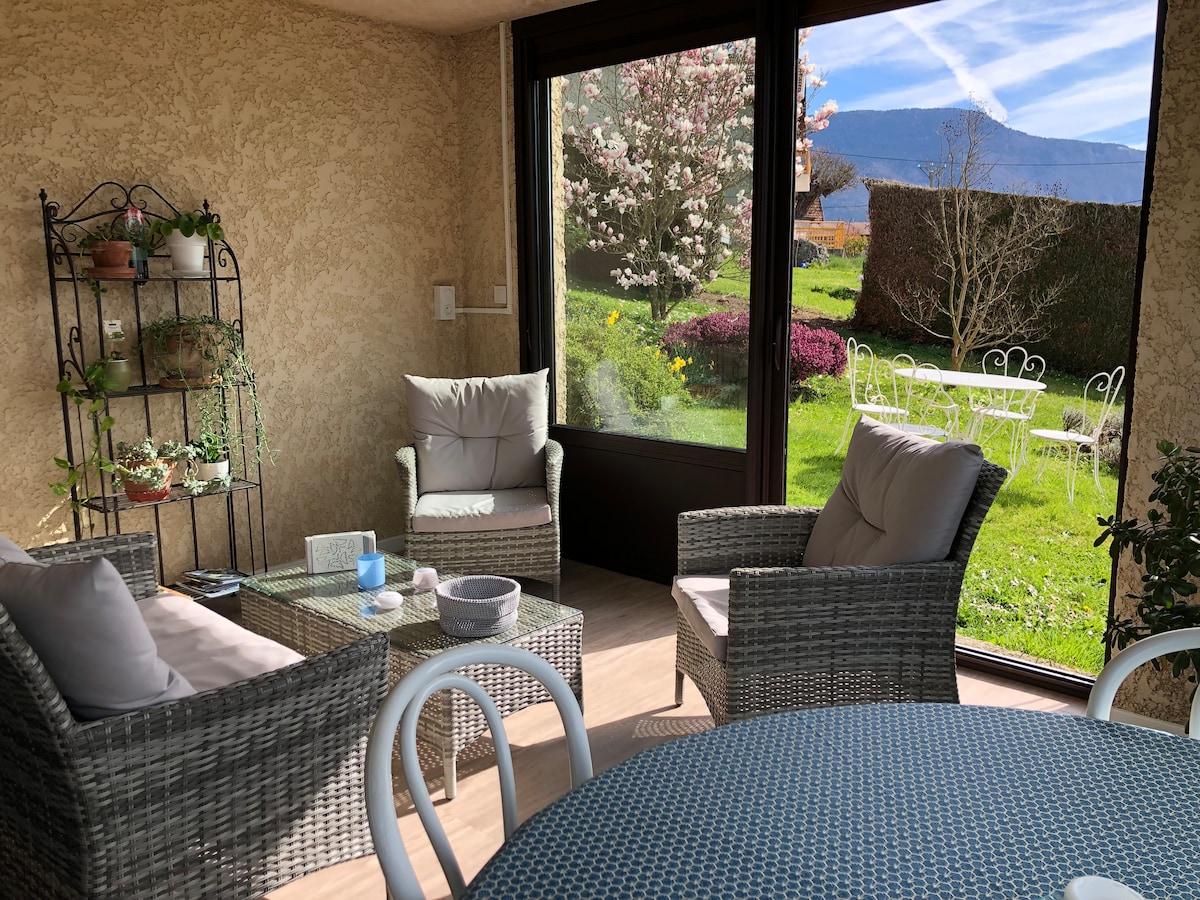 Petite maison d'environ 45 m2 Maximum 3 adultes ou 2 adultes et 2 enfants Rdc : cuisine équipée, toilettes et douche 1er : salon avec télé, clic clac de 120, chambre avec lit de 140 Coin verdure : table, parasol, barbecue, abri pour une voiture Linge de lit et de toilette fournis. Walibi à 10 mn, lac du Bourget, de Paladru, d'Aiguebelette 35 mn Annecy 1h , Lyon, Chambéry 45 mn Viarhôna Genève - Lyon 5mn (local pour vélos fermé) Rando, musée mémorial, centre nautique ... Non fumeurs Pas d'animaux