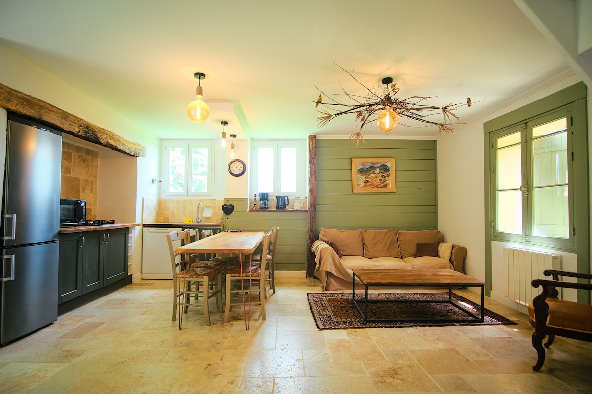 Egy igazi kis paradicsom Az arany háromszög szívében lévő erdő nyugalma által védett autentikus Périgourdine egy varázslatos falucskában található, 15 percre Sarlattól. Ez a ritka és szokatlan ház az én kincsem! ⚠️Két imádnivaló macskát kell etetni, amíg a szálláshelyen tartózkodsz. Nagyon hálás vagyok a házigazdáknak, néha „ajándékokat” hoznak vissza (madarakat, mezei egereket)... 2 km-re a híres és fényűző Château de Beynac-tól. Ne felejtsétek el magatokkal hozni a lepedőt, a paplanhuzatot és a párnahuzatot, 160-as ágy