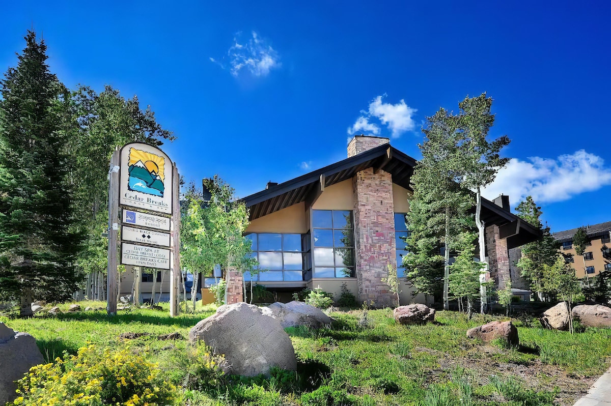 (The pool and gym are closed for the month of September and some construction may be being done throughout the property that may cause noise) Enjoy the beautiful Fall in the MAIN building at Cedar Breaks Lodge. Bring your bikes to explore the mountain, rent side by sides across the street, or hike and explore the beautiful mountain. The resort offers many amenities including bbq grills, volleyball, game room, fire pit and more.