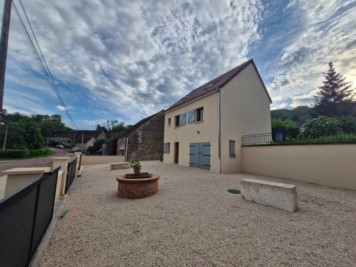 My house is the ideal place to rest and to enjoy historical Burgundy . Nested in a green and peaceful countryside, this independent guest house has a bedroom, a bathroom, a large kitchen downstairs and a second bedroom and a playroom upstairs. The kitchen being very large, I put 2 armchairs so you can enjoy the fire or watch TV. My house is perfect as well if you are on a professional trip in the area.
