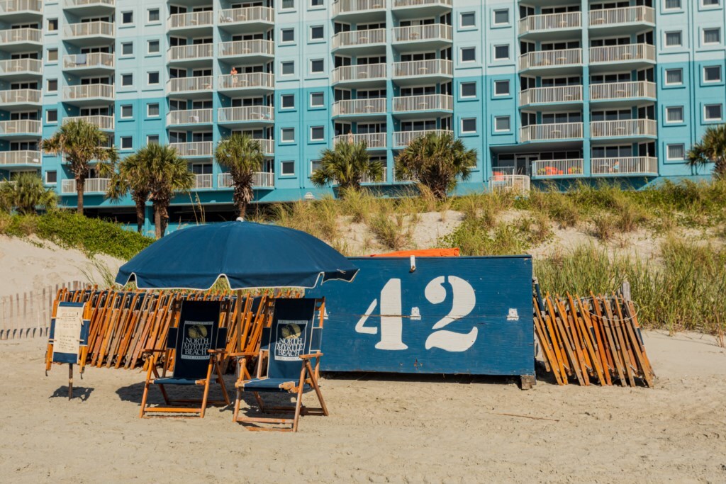 Myrtle Beach, SC-No detail is overlooked at this charming place to stay. Very nice beach view, beach access, quiet area - Get to beach within a few minutes and/or enjoy the pool lounging or hot tub in evening! Downstairs bar at night, breakfast in morning & turtle bay for lunch ! Starbucks located inside resort as well! What else do you need? Welcome packet , kids games, first aid, 2 beach chairs available, pool noodles too! Fresh laundered Sheets, comforter & bath towels provided!